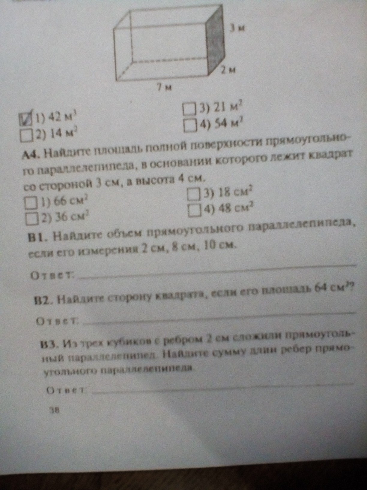 Sполн. = 2 * 3² + 4 * 3 * 4 = 18 + 48 = 66 см²,