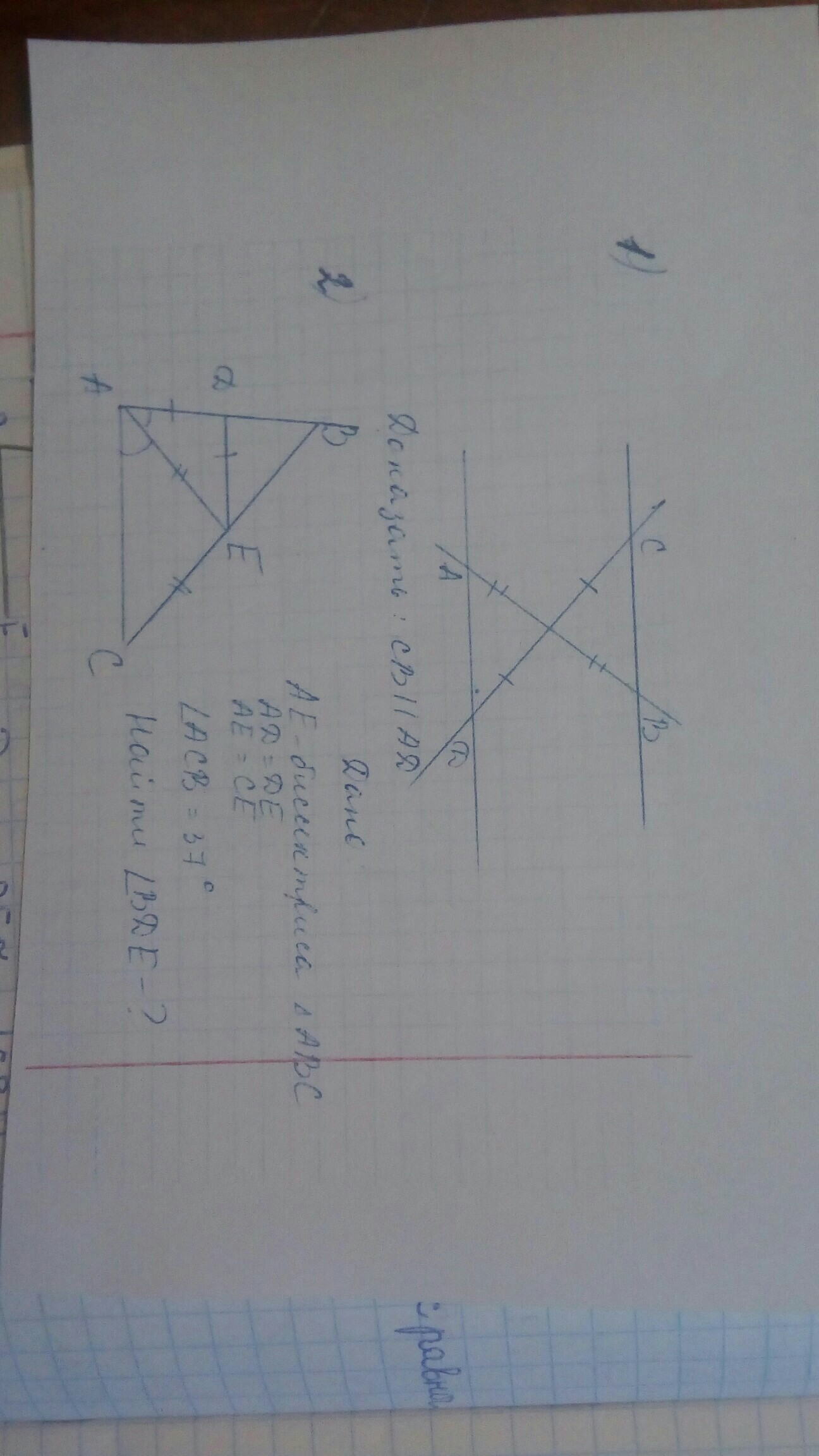 1. Прямые параллельны т.к. угол С =углу Д, а угол А = углу В. Эти углы также являются смежными при параллельных прямых СВ и АД ( если бы это было известно)