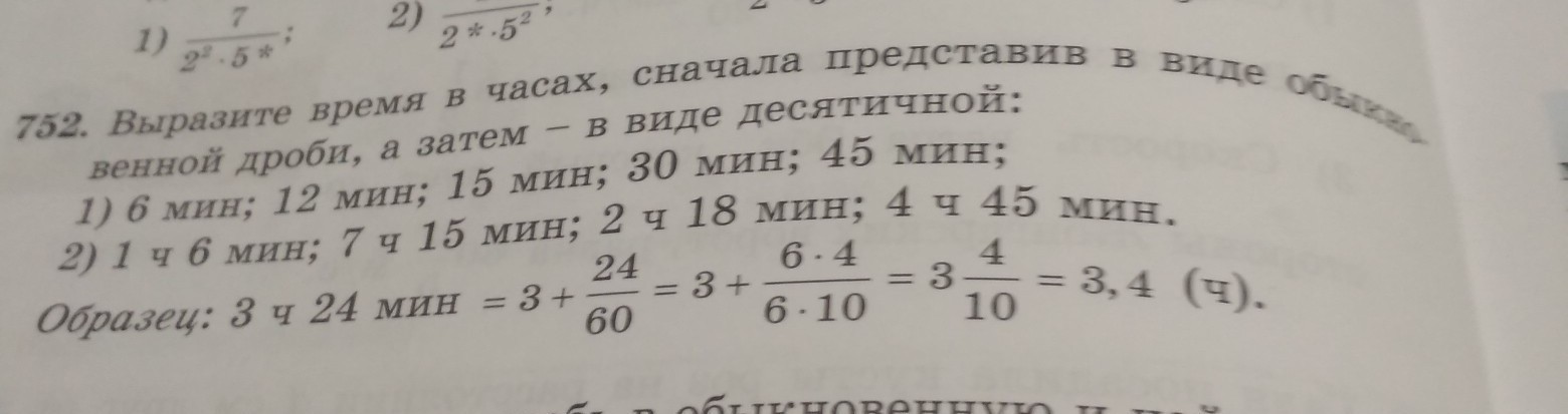 выразите время в часах сначала Представьте в виде обыкновенной дроби а затем в виде десятичной по образцу
