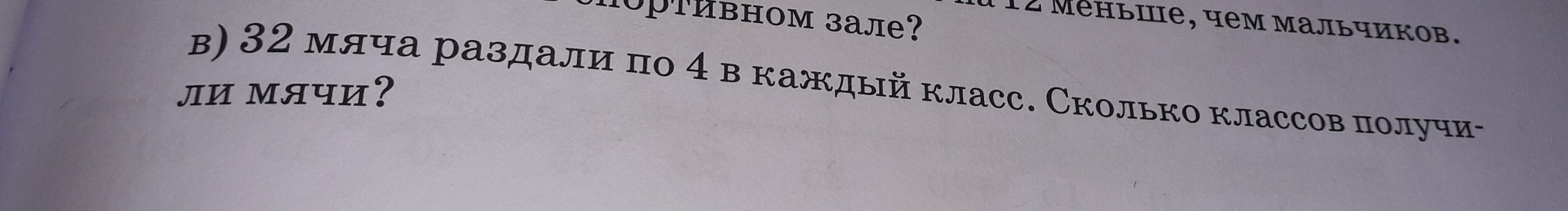 128 класов получили 32 мяча. Сколько мячей получит один класс?