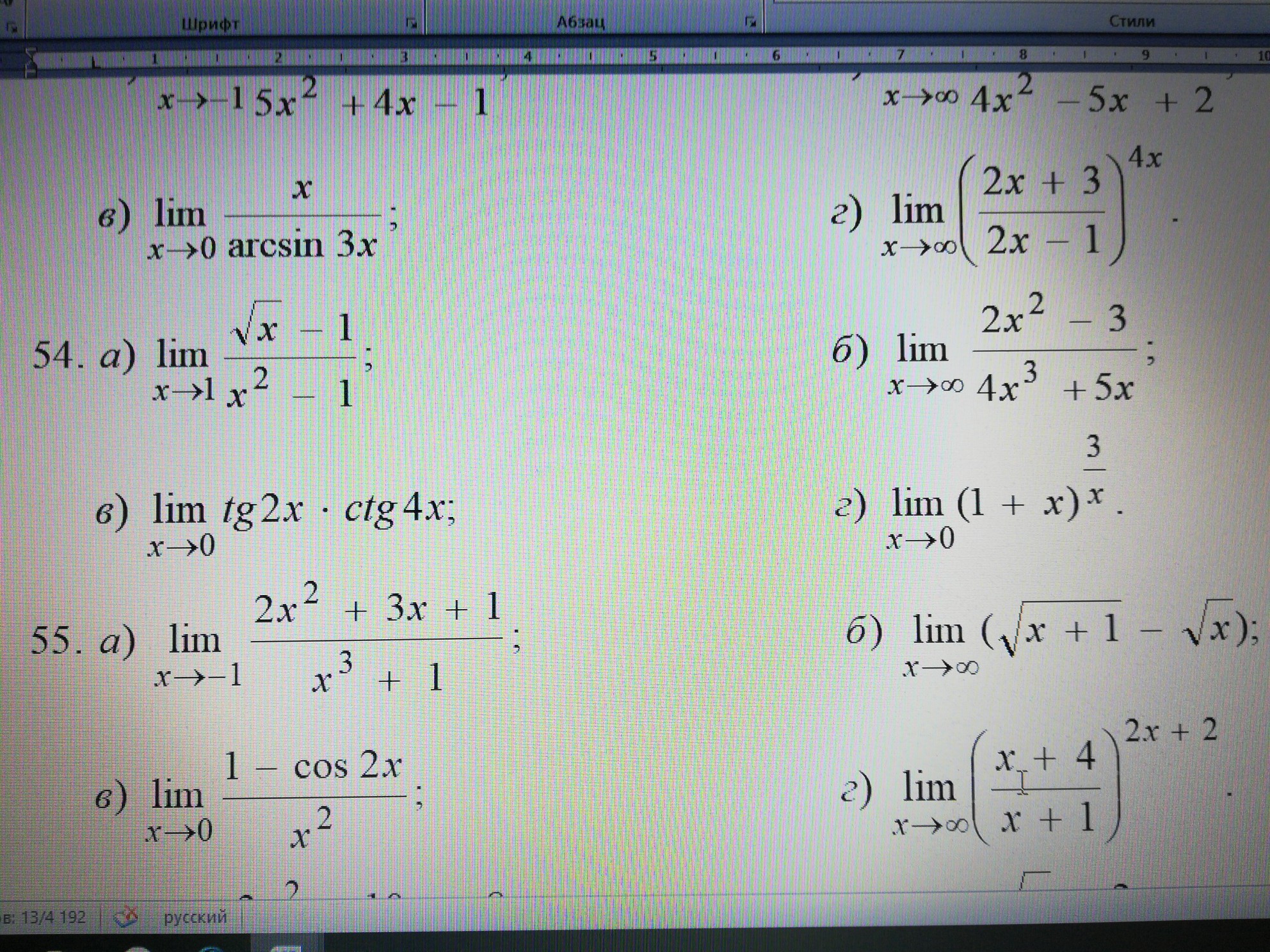 48 баллов. ООО ОЧЕНЬ НУЖНА ВАША ПОМОЩЬ. найти указанные границы(пределы) (не пользуясь правилом Лопиталя) Номер 54.