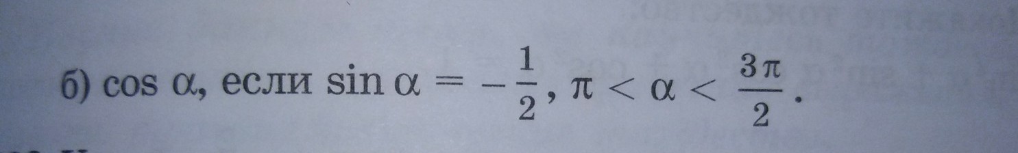 sinα==1/2 π<α<π/2 (это третья четверть) ⇒ сosα<0.