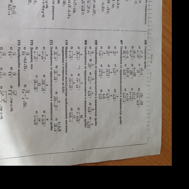 а)mкокень из х/х;б)корень из 2/2; в)3 корень из с/5с;г)а корень из3/6;д)корень из 6/2;е)корень из 15/12; 171)а)х(х- корень из у)/(х^-у);б)в(а+корень из в/(а^-в);в)(корень из 10+корень из2)/2;г)-4(корень из 3-корень из 6);д)9(3+2 корень из 2);е)-2(1-5 корень из2)/7