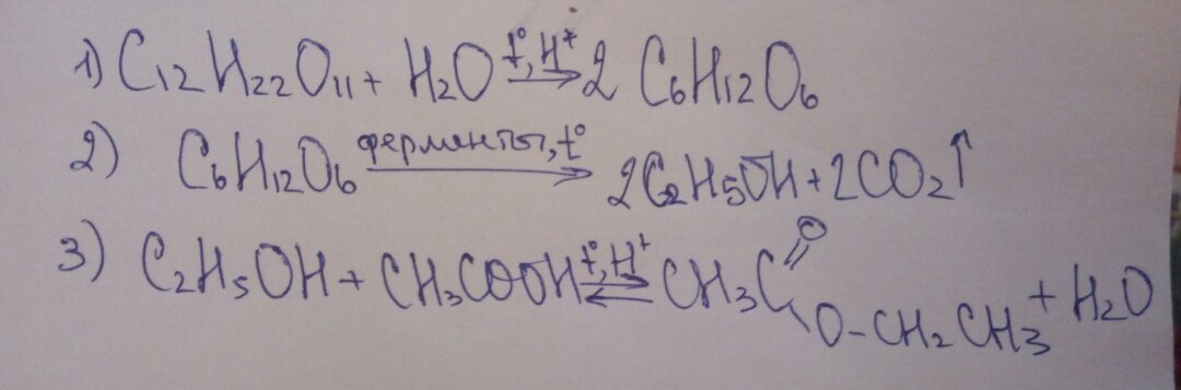 сахароза → глюкоза → етанол → етиловий естер оцтової кислоти