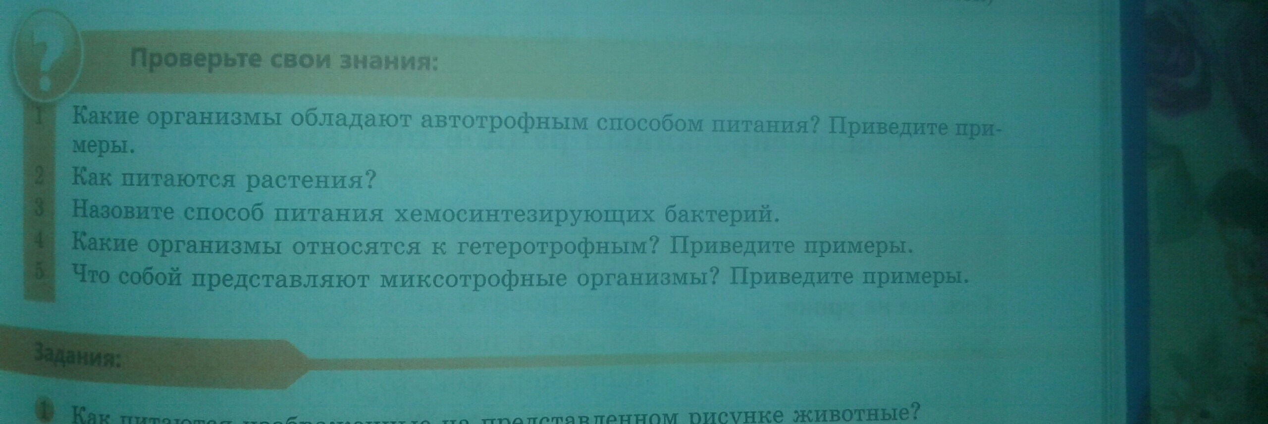 Проще говоря автотрофный способ питания у растений,самые простые примеры:берёза,трава,цветы и т.п.