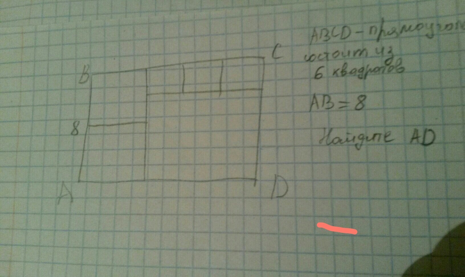 Средние квадраты 4*4, большой квадрат 6*6 значит АD=4+6=10