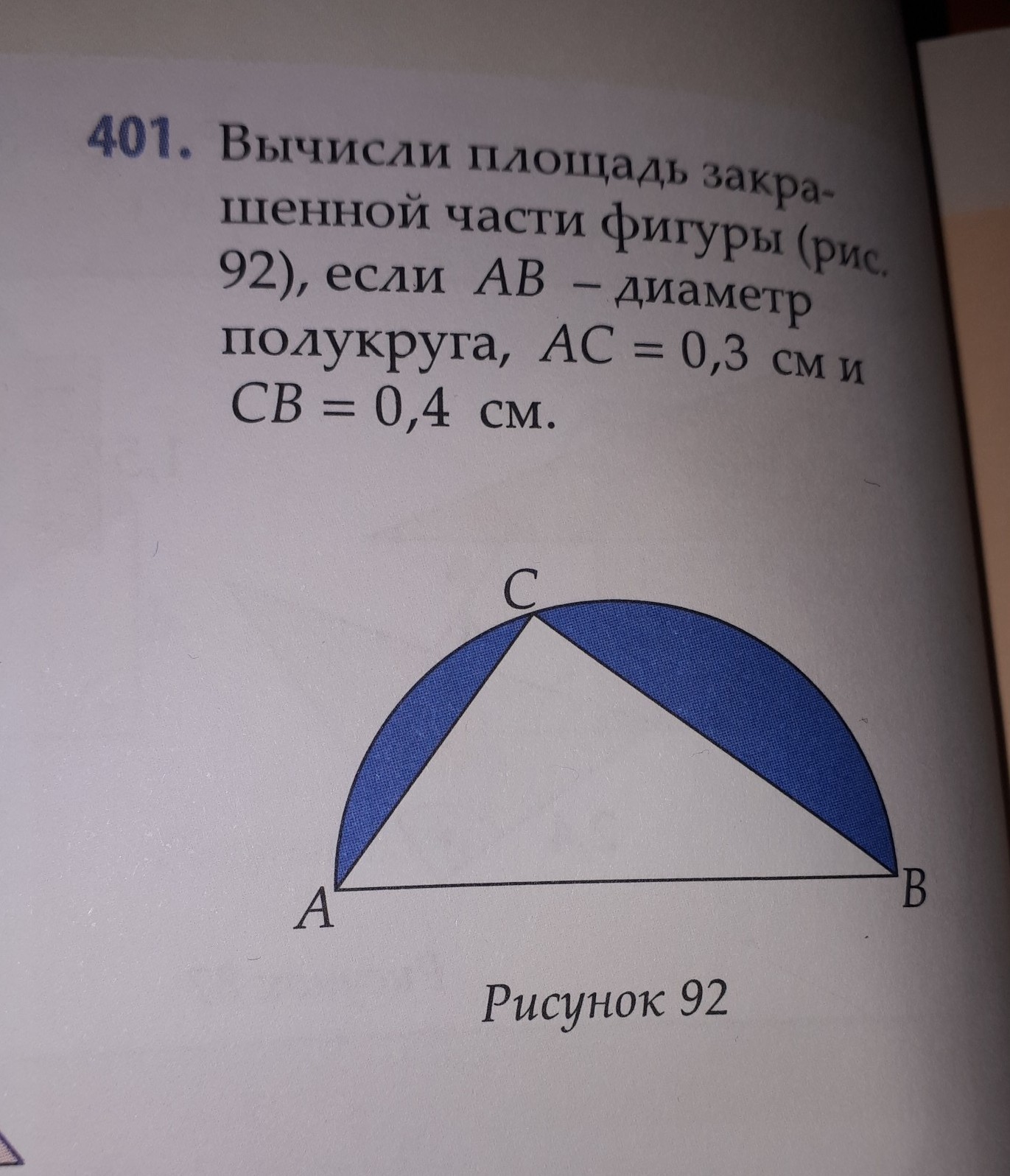 S∆ABC=(1/2)×0,3×0,4=0,06 кв. см.