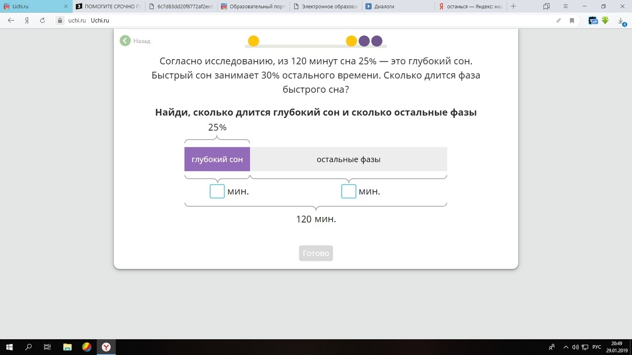 глубокий сон 30 минут,а остальные фазы тогда 120-30=90 минут