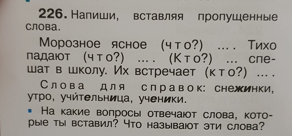 Морозное ясное утро.Тихо падают снежинки. Ученики спешат в школу. Их встречает учительница.