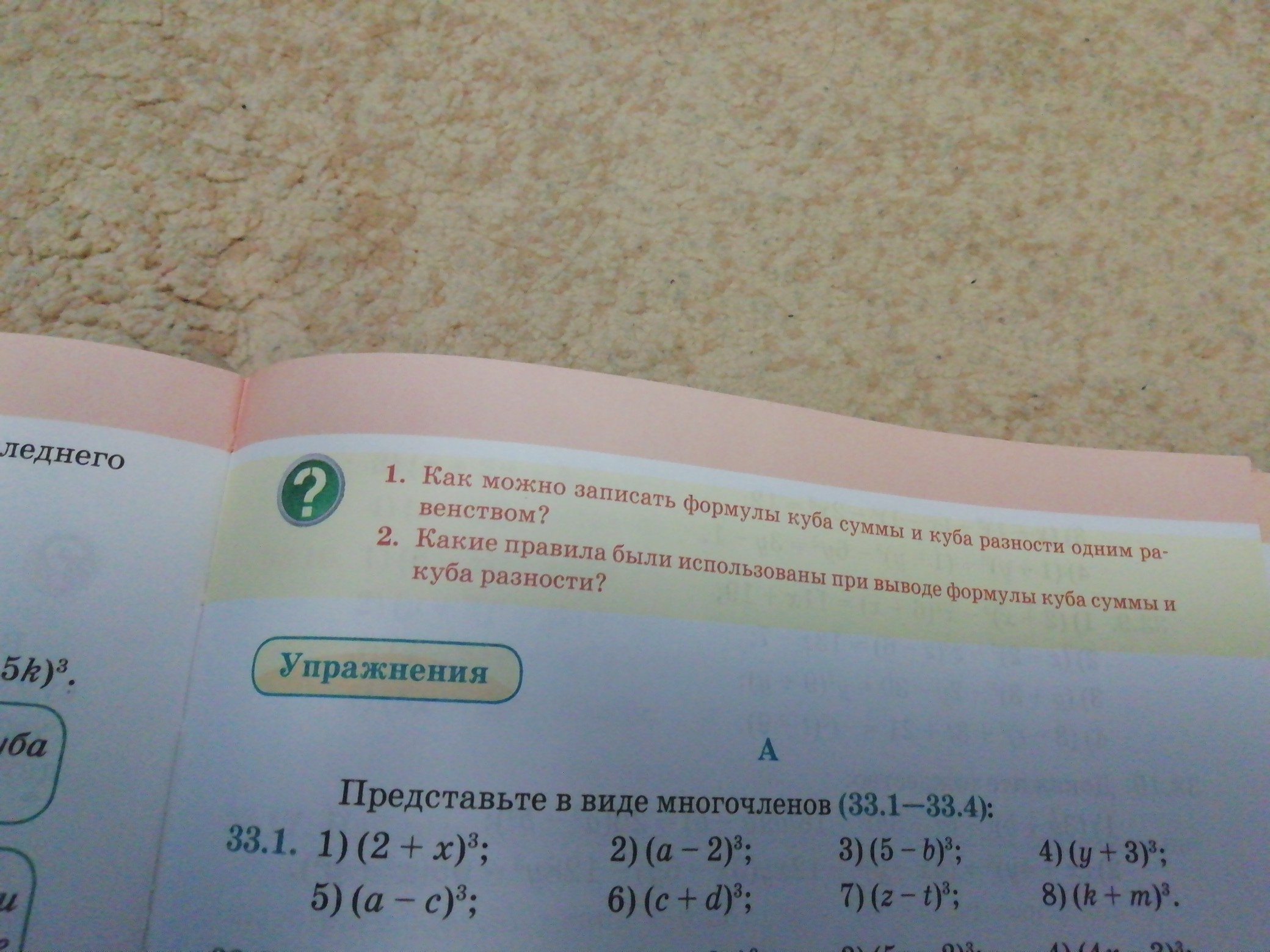 8) (k+m)^2=(k+m)*(k+m)=k^2+km+km+m^2=k^2+2km+d^2