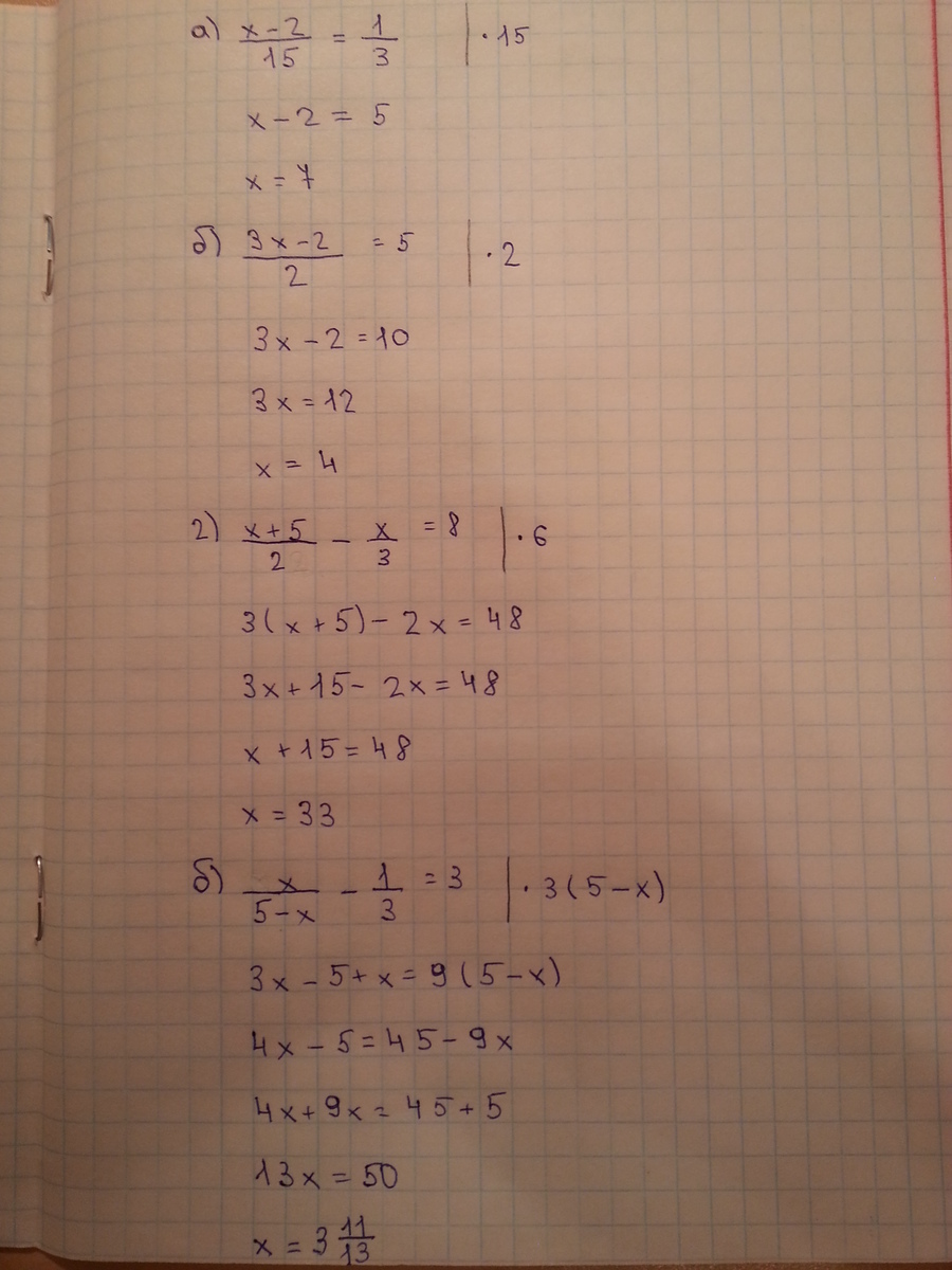 Б) Если я все правильно понимаю, то 2/2 это 2 разделить на 2, значит это 1. 3х-1=5, значит х=2