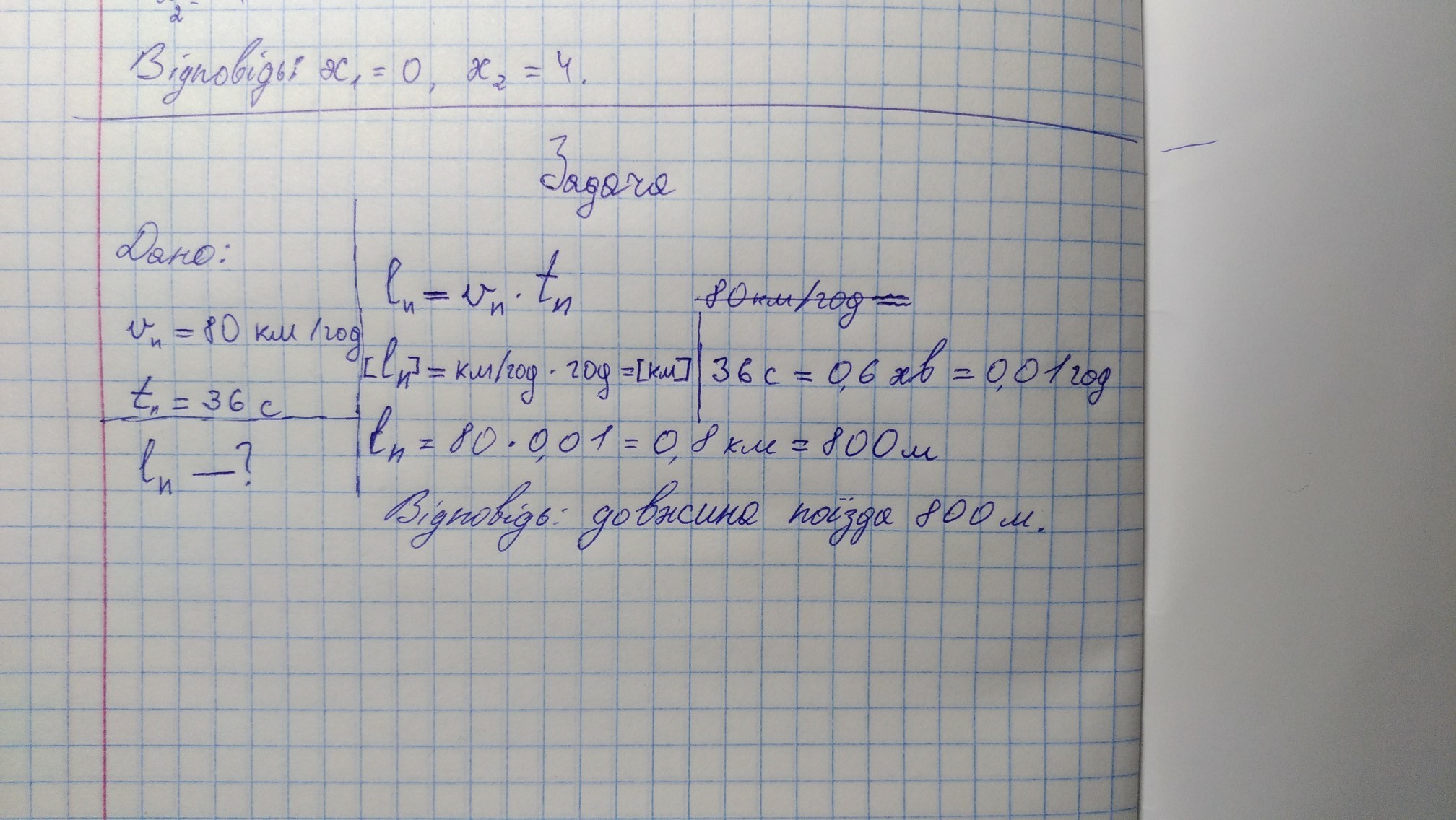 Поїзд,рухаючись рівномірно зі швидкістю 80км/год проїзджає повз придорожній стовп за 36с.Знайди довжину поїзда в метрах