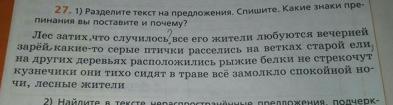 птички расселись, расположились белки, не стрекочут кузнечики.