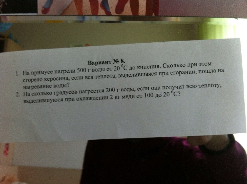 на примусе нагрели 500 г воды от 20на примусе нагрели 500 г воды от 20 градусов до кипения. Сколько при это сгорело керосина если вся теплота, выделившаяся при сгорание пошла на нагревание воды?