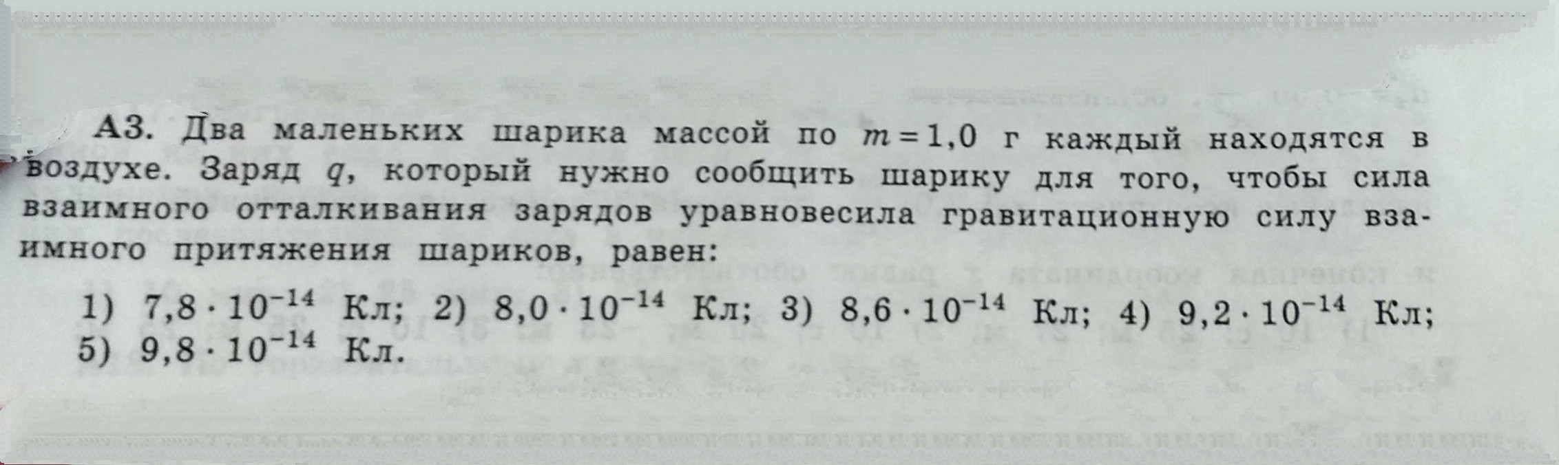 k*q² = G*m², откуда q = m*√G/k = 10^(-3)*√6,67*10^(-11)/9*10^9 = 8,6*10^(-14) Кл.