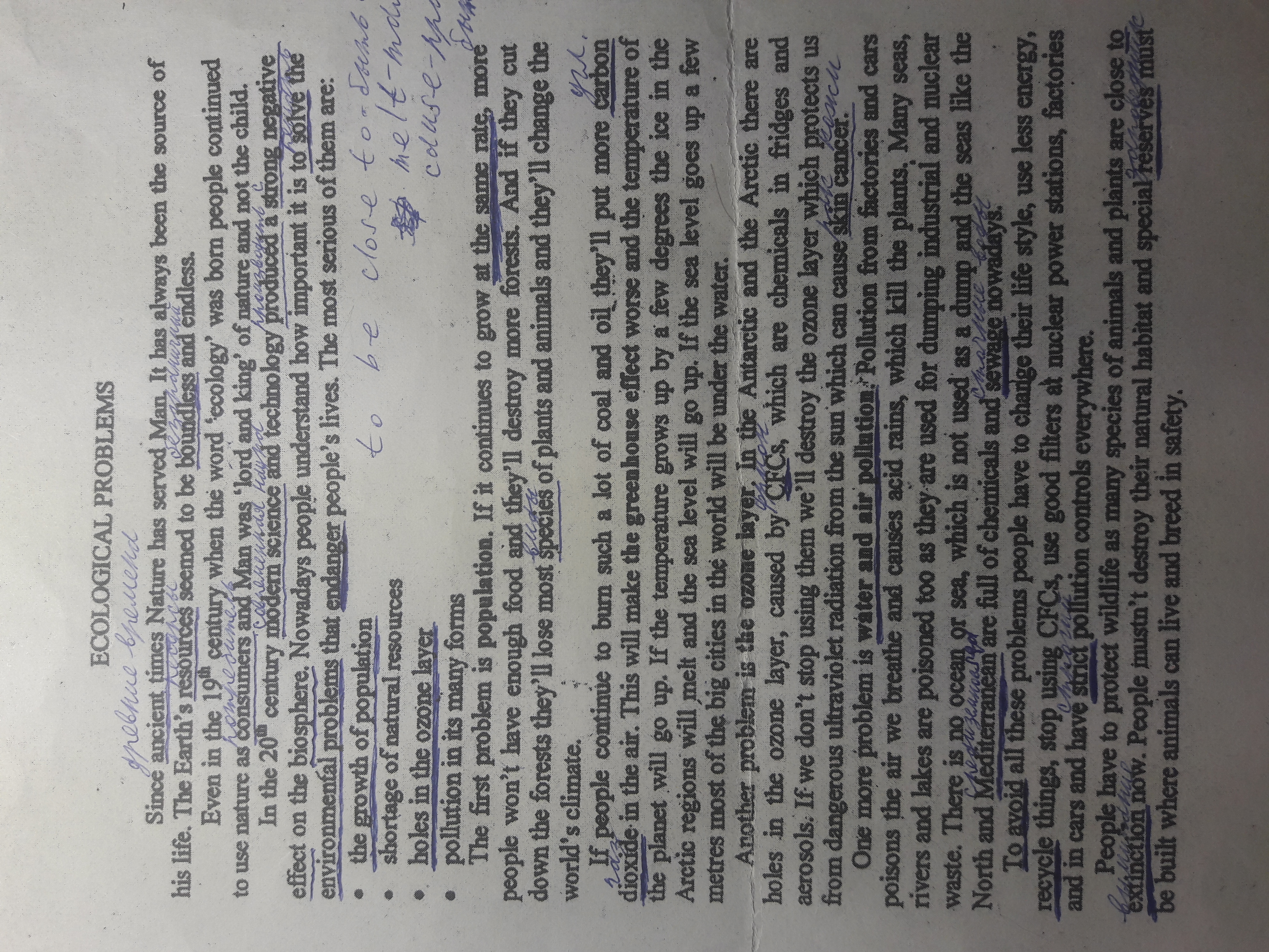 Первая проблема это население. Если оно продолжит расти в таком темпе, всё больше людей не смогут получать достаточно пищи и они будут уничтожать всё больше лесов. И если они вырубят все леса, они потеряют большую часть видов растений и животных и они изменят климат планеты.