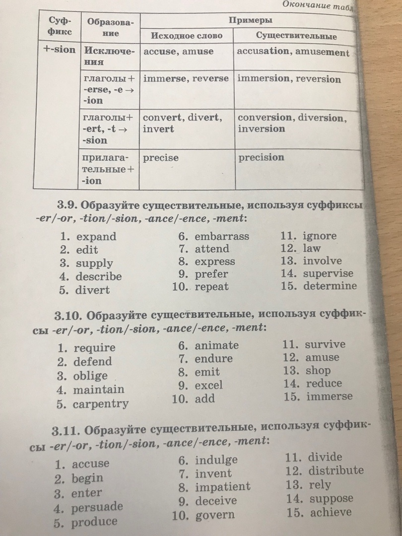 Помогите образовать существительные /выше есть подсказка-таблица/
