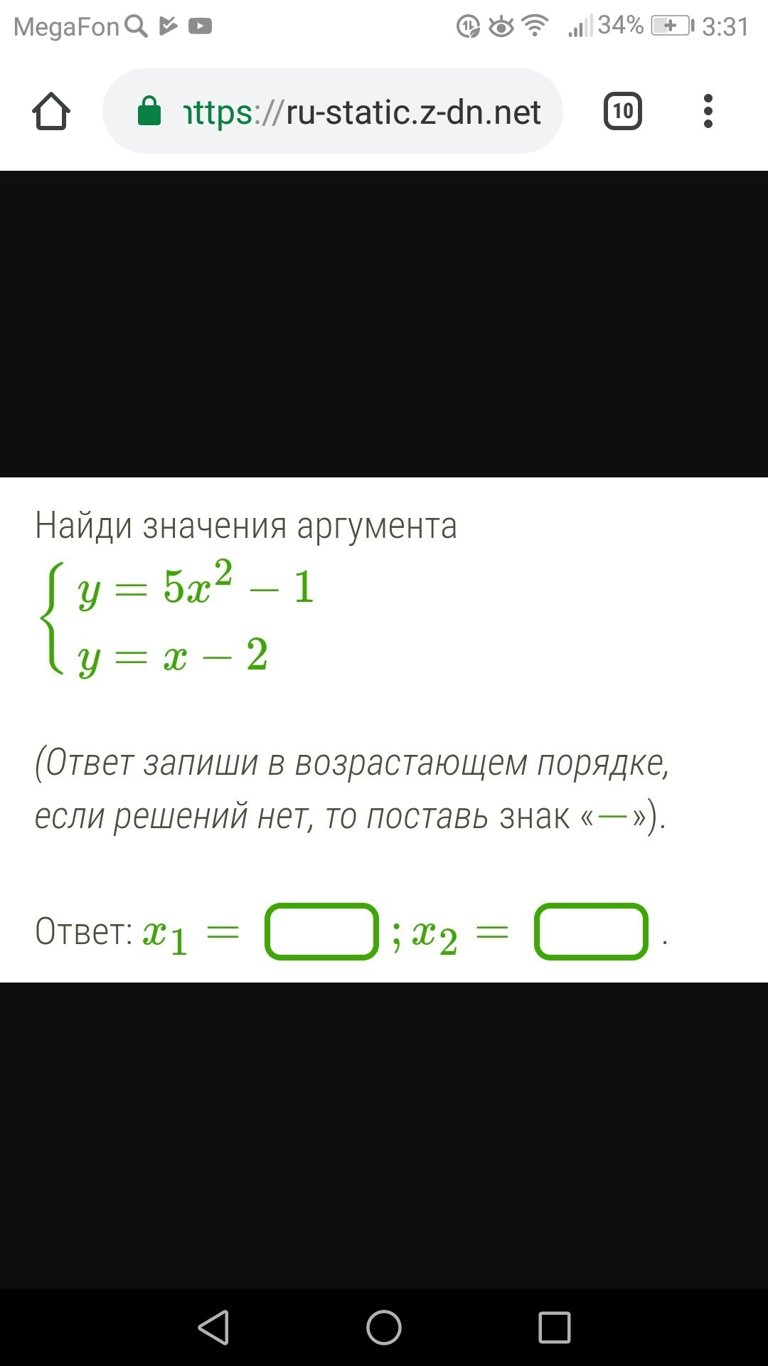 Действительных решений эта система не имеет, дискриминант меньше нуля, ставь прочерки, как написано в скобках.