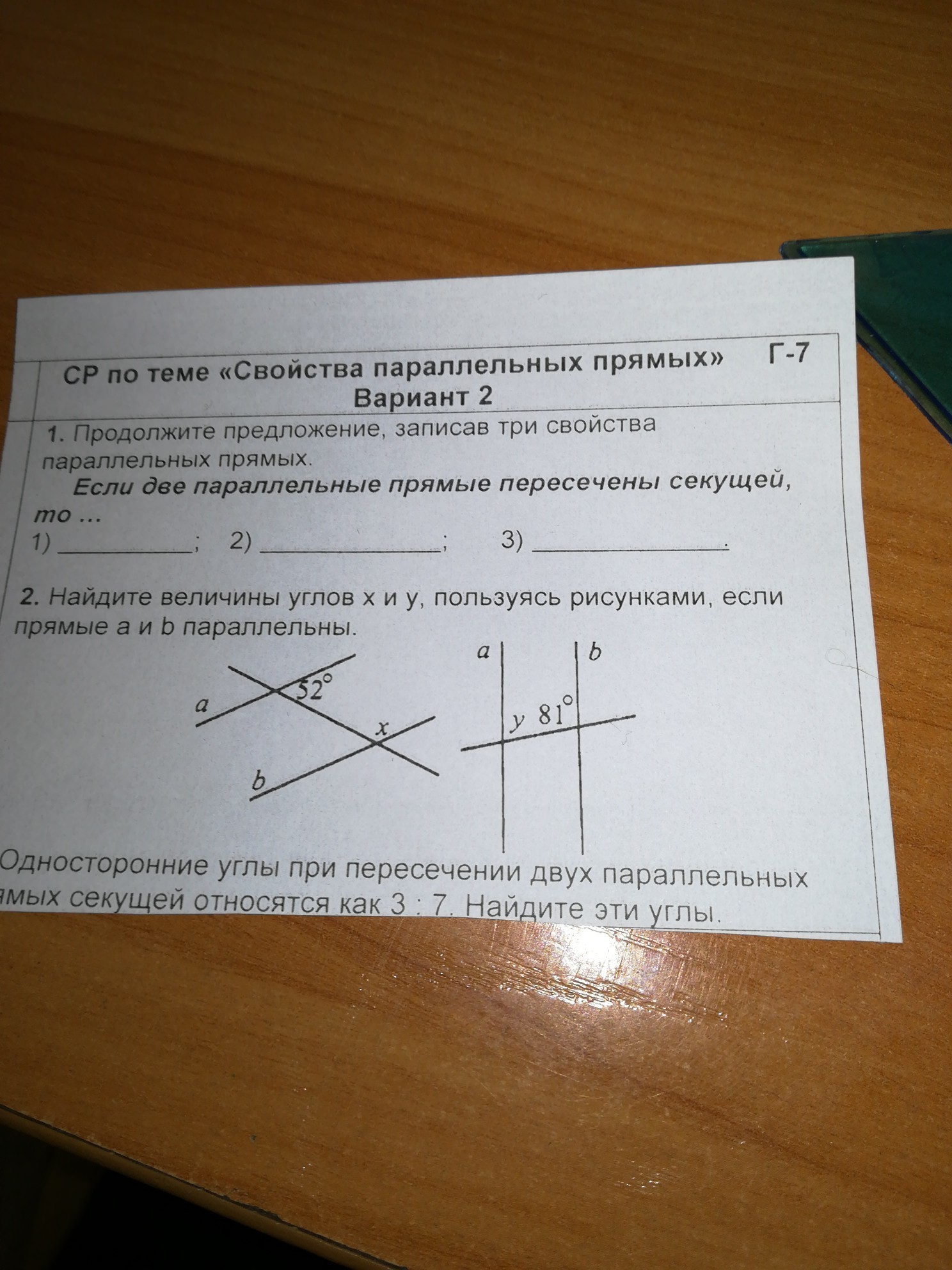 найдите величины углов х и у, пользуясь рисунками, если прямые а и б параллельны.