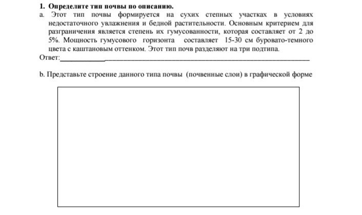1)Каштановые почвы сухих степей. Подтипы: светло-каштановые, каштановые и темно-каштановые