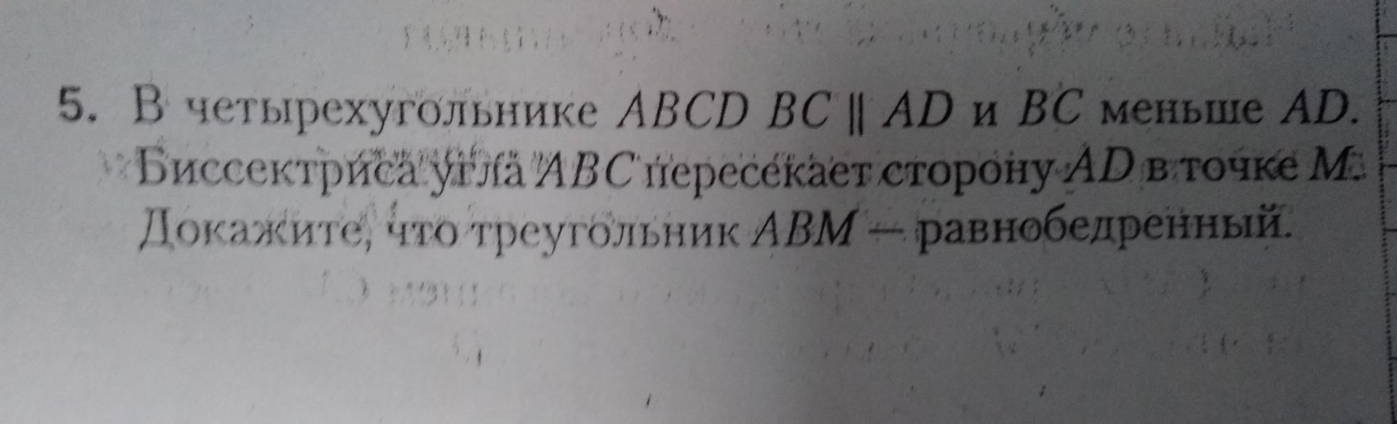 АВСД - четырёхугольник , ВС║АД , ВС<АВ , ВМ - биссектриса .