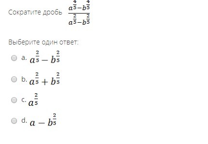 frac{({a}^{ frac{2}{5} }  -  {b}^{ frac{2}{5} } )({a}^{ frac{2}{5} }   +   {b}^{ frac{2}{5} } )}{({a}^{ frac{2}{5} }    -   {b}^{ frac{2}{5} } )} = ({a}^{ frac{2}{5} }   +   {b}^{ frac{2}{5} } )