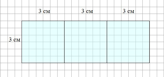 Выстраиваем три таких квадрата в линию. Размеры получившегося прямоугольника: 3 см и 9 см