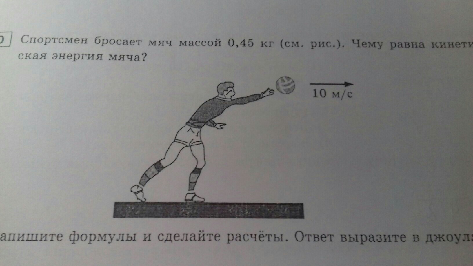 спортсмен бросает мяч массой 0.45 кг (см .рис .) . чему равна кинетическая энергия мяча