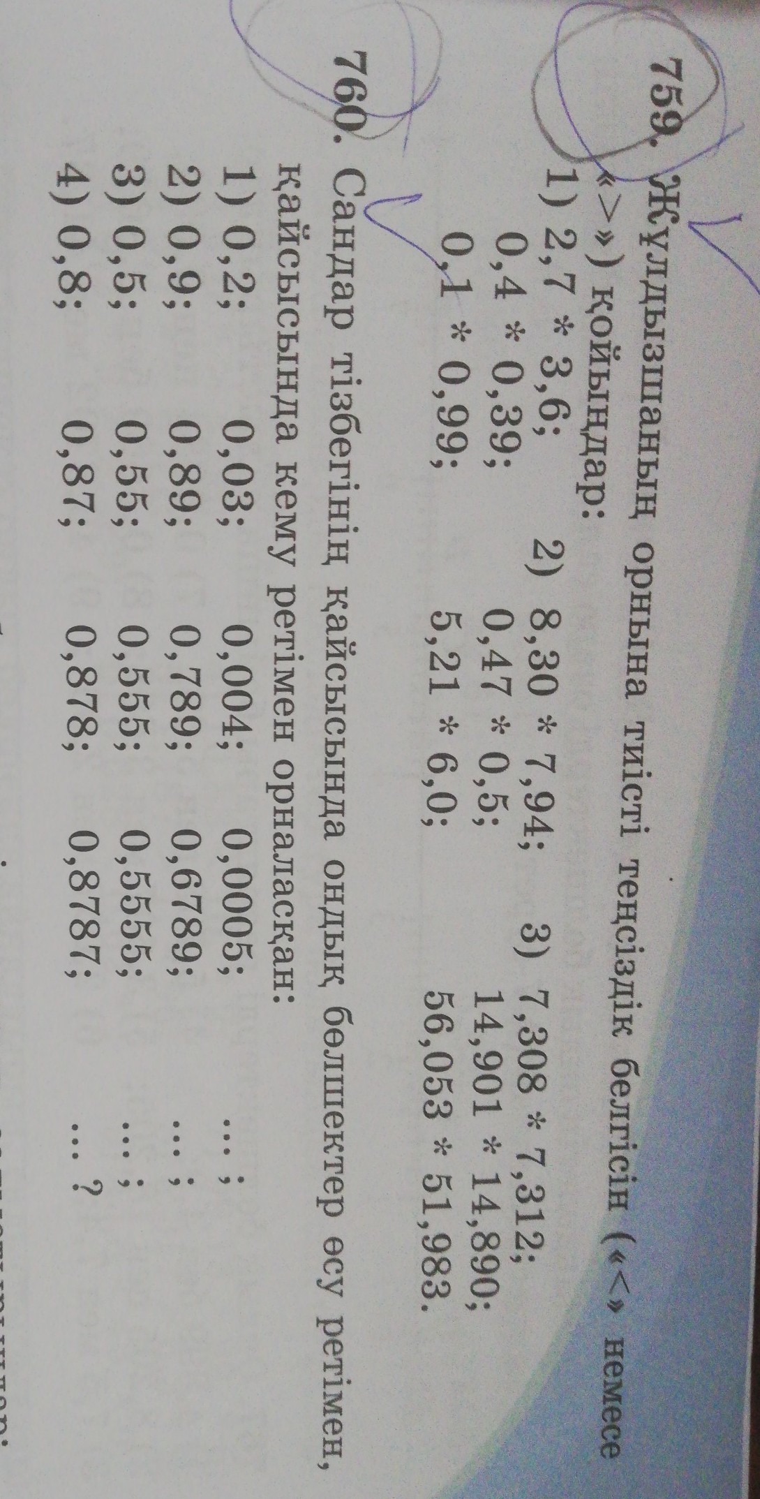 В какой последовательности чисел десятичные частицы расположены в порядке роста, в каком порядке убывания.