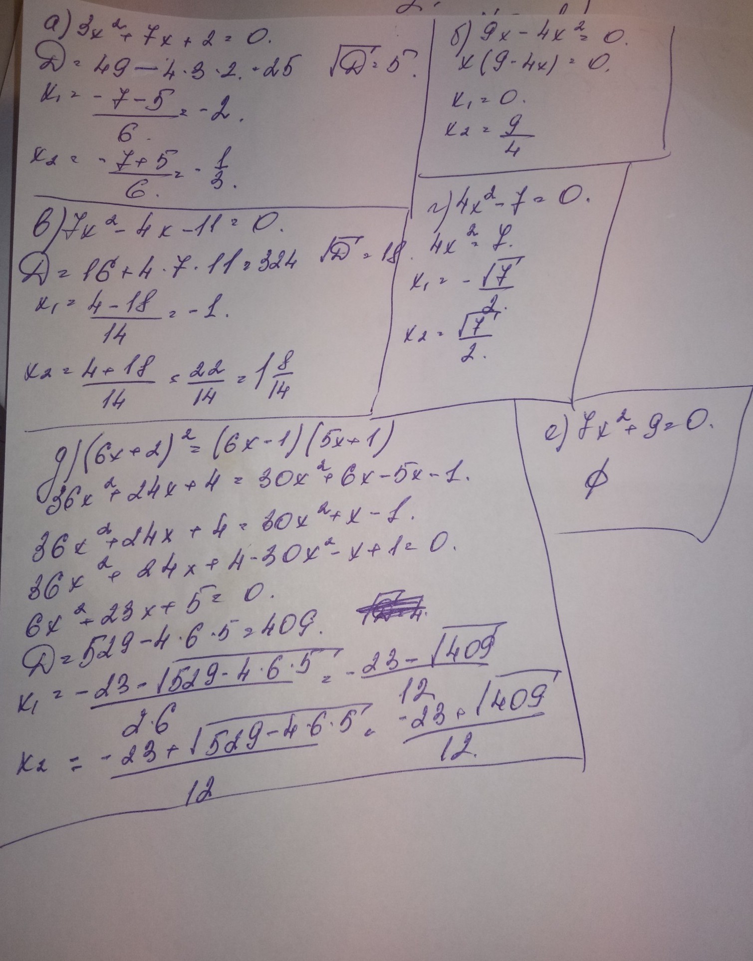 е)7х2 + 9 = 0