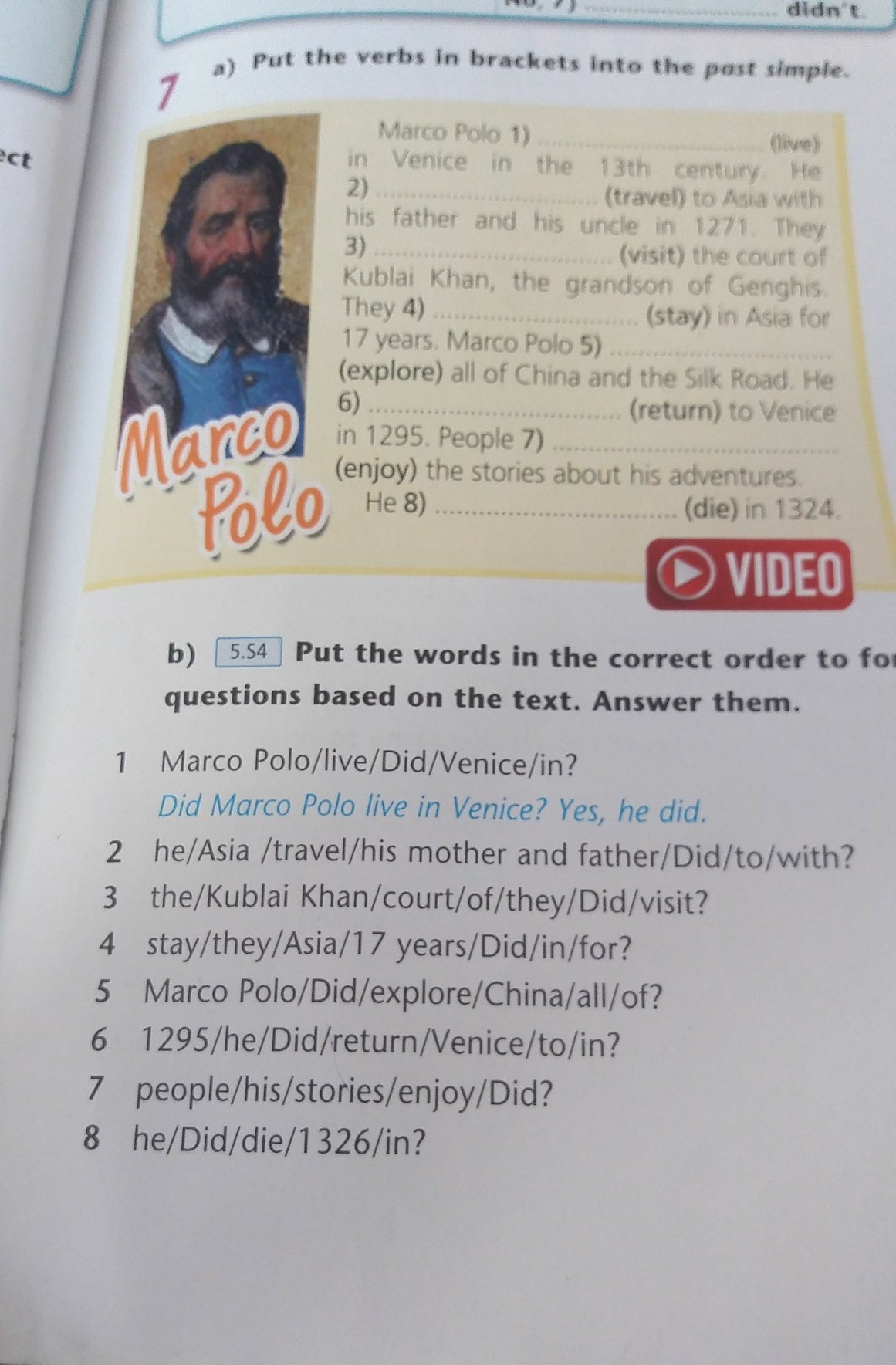 Marco Polo lived in venice in the 13th century.He traveled to Asia with his father and his uncle in 1271.They visited the court of kublai khan ,the grandson of genghis. they stayed in Asia for 17 years . marco polo explored all of China and the Silk Road. He returned to venice in 1295. People enjoyed the stories about his adventures. He died in 1324.
