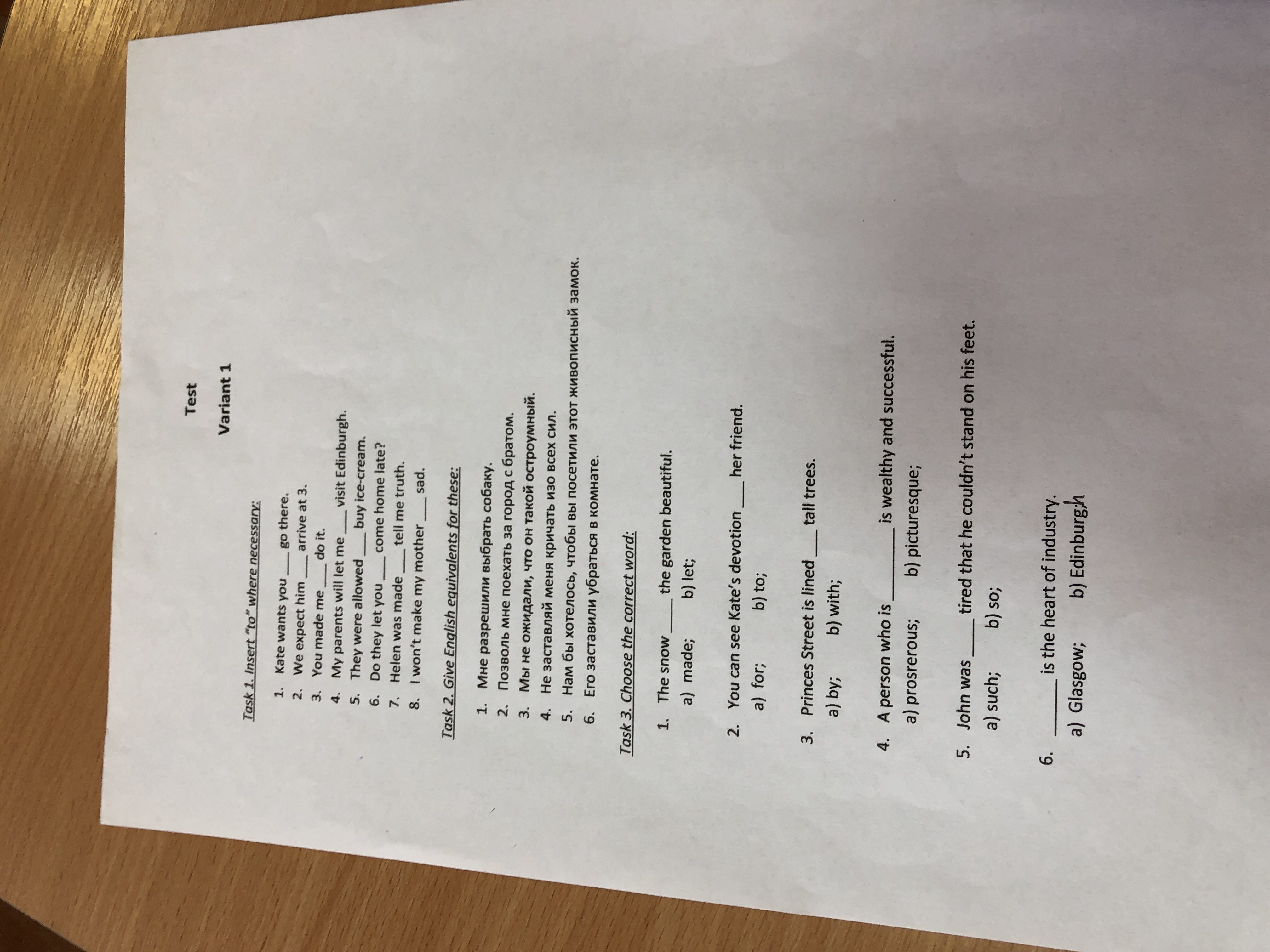 6) He was forced to clean the room.