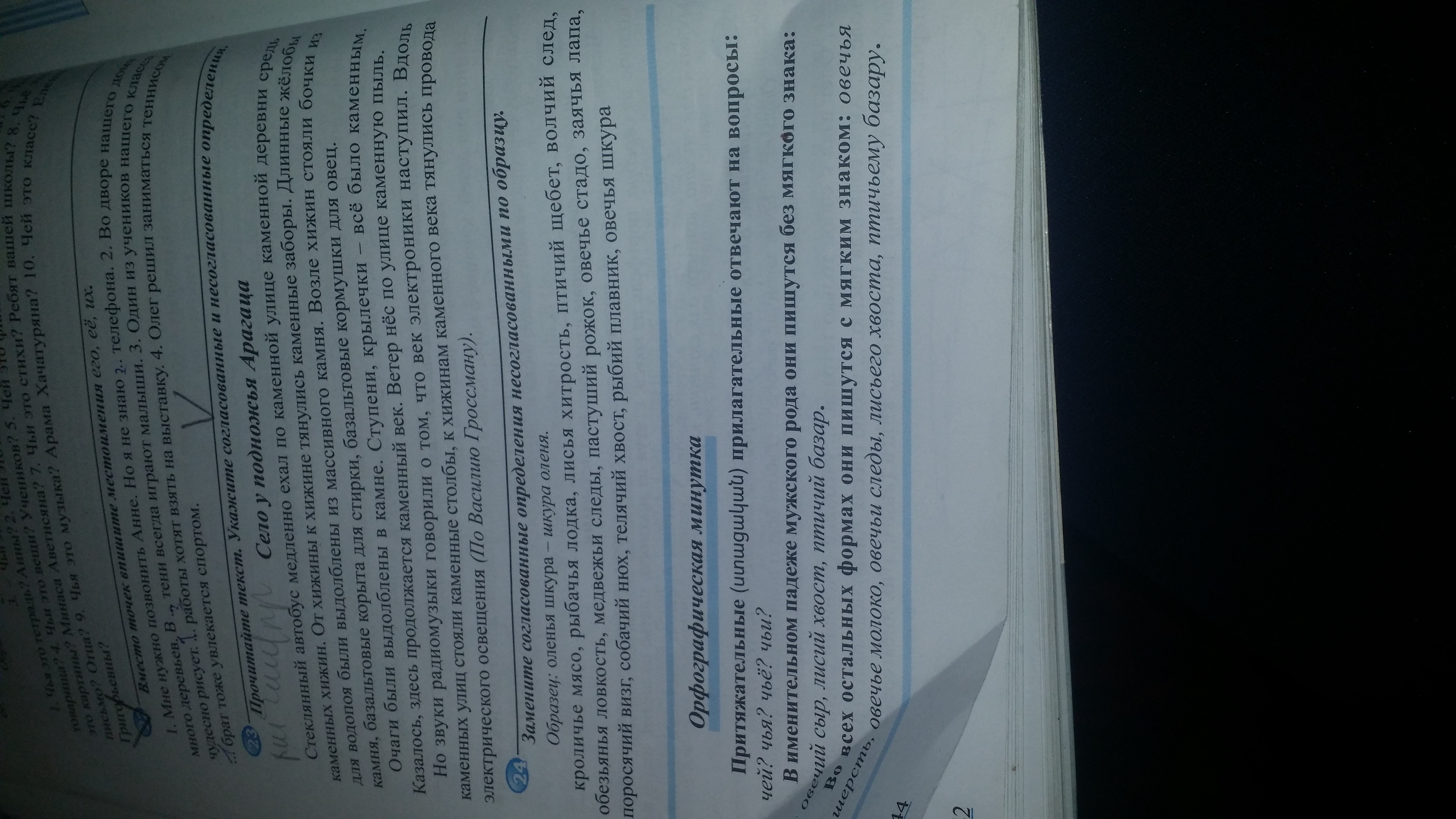 Мясо кролика; лодка для рыбалки; хитрость лисы, щебет птиц; след волка; ловкость обезьяны; следы медведя; рожок пастуха; стадо овец; лапа зайца; визг поросёнка; нюх собаки; хвост телёнка; плавник рыбы; шкура овцы.