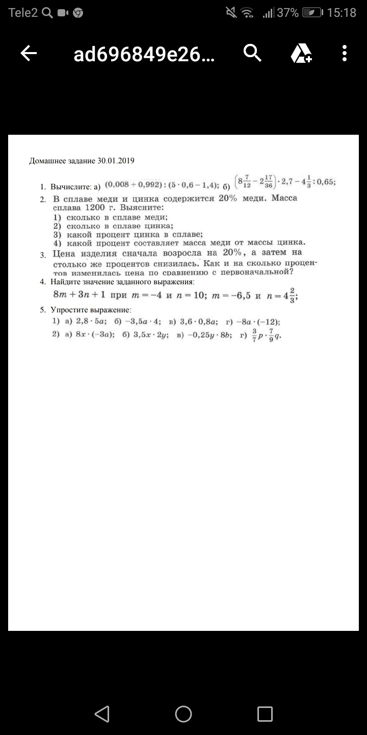 1)Масса меди - 20 % от всей массы , то есть 1200 гр. Сделаем пропорцией :
