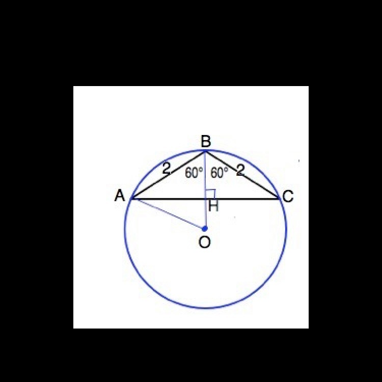 Угол при вершине равнобедренного треугольника равен 120 градусов,боковая сторона 2 см.Найдите радиус описанной окружности.