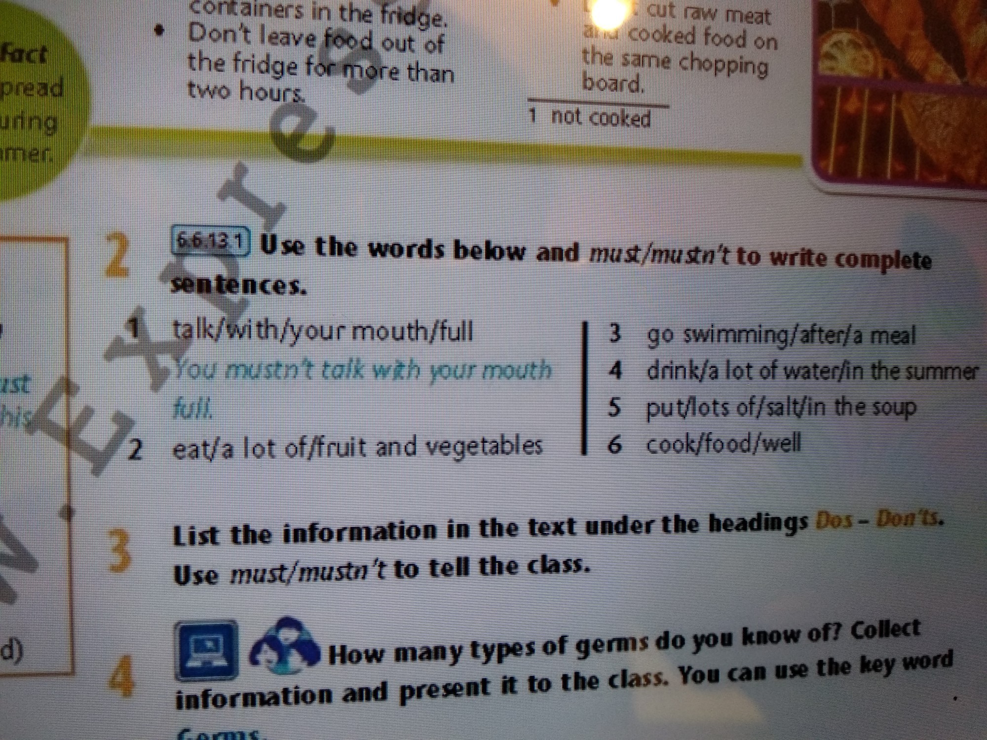 3 You mustn't go swimming after a meal.