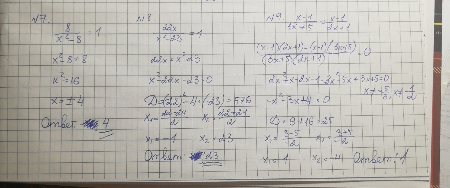 8/(х²-8) = 1,
