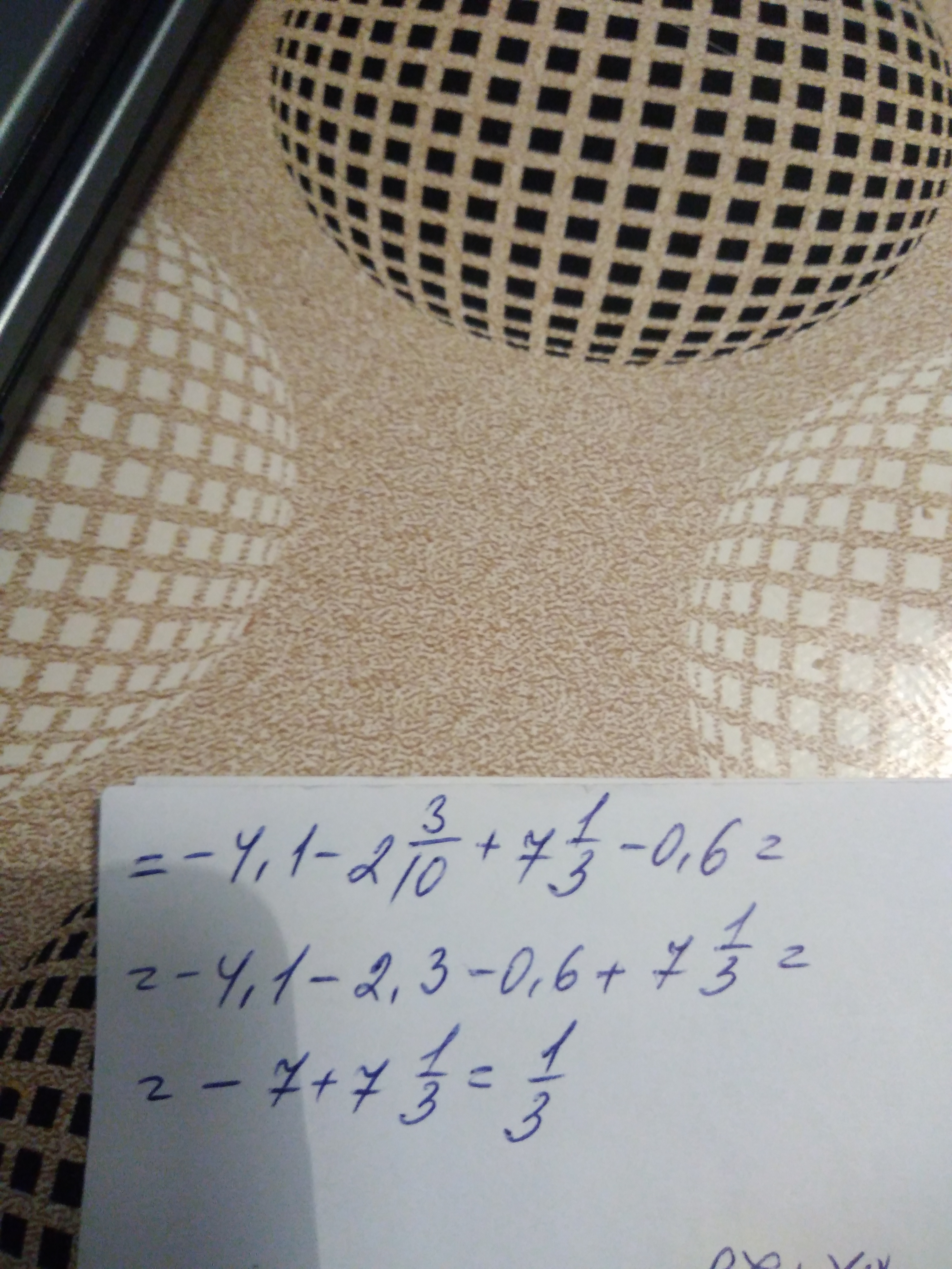 -4,1 - 2,3 +7 ⅓ - 0,6 =