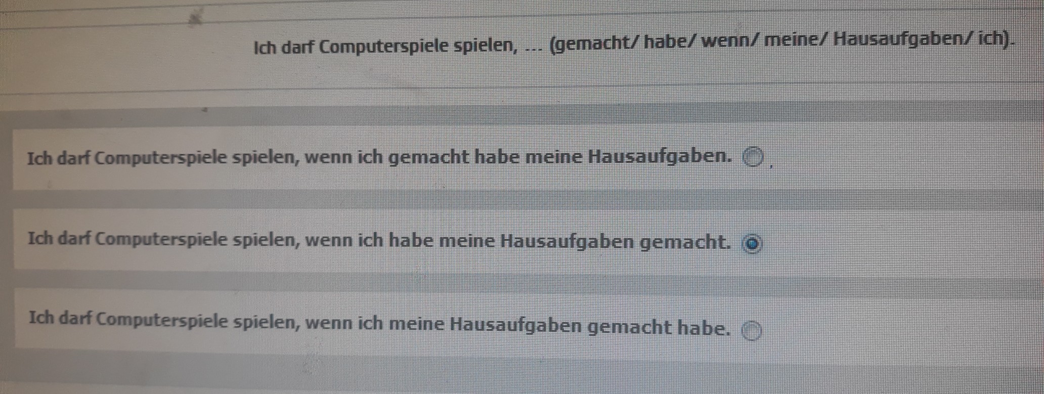 Ich darf Computerspiele spielen,wenn ich meine Hausaufgaben gemacht habe.