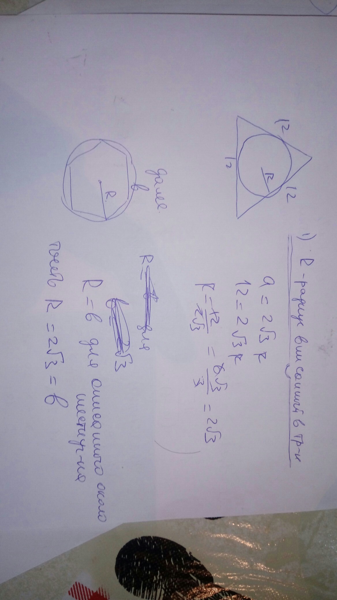 Около окружности описан равносторонний треугольник и в нее вписан правильный шестиугольник . найдите стороны шестиугольника . если сторона треугольника 12м