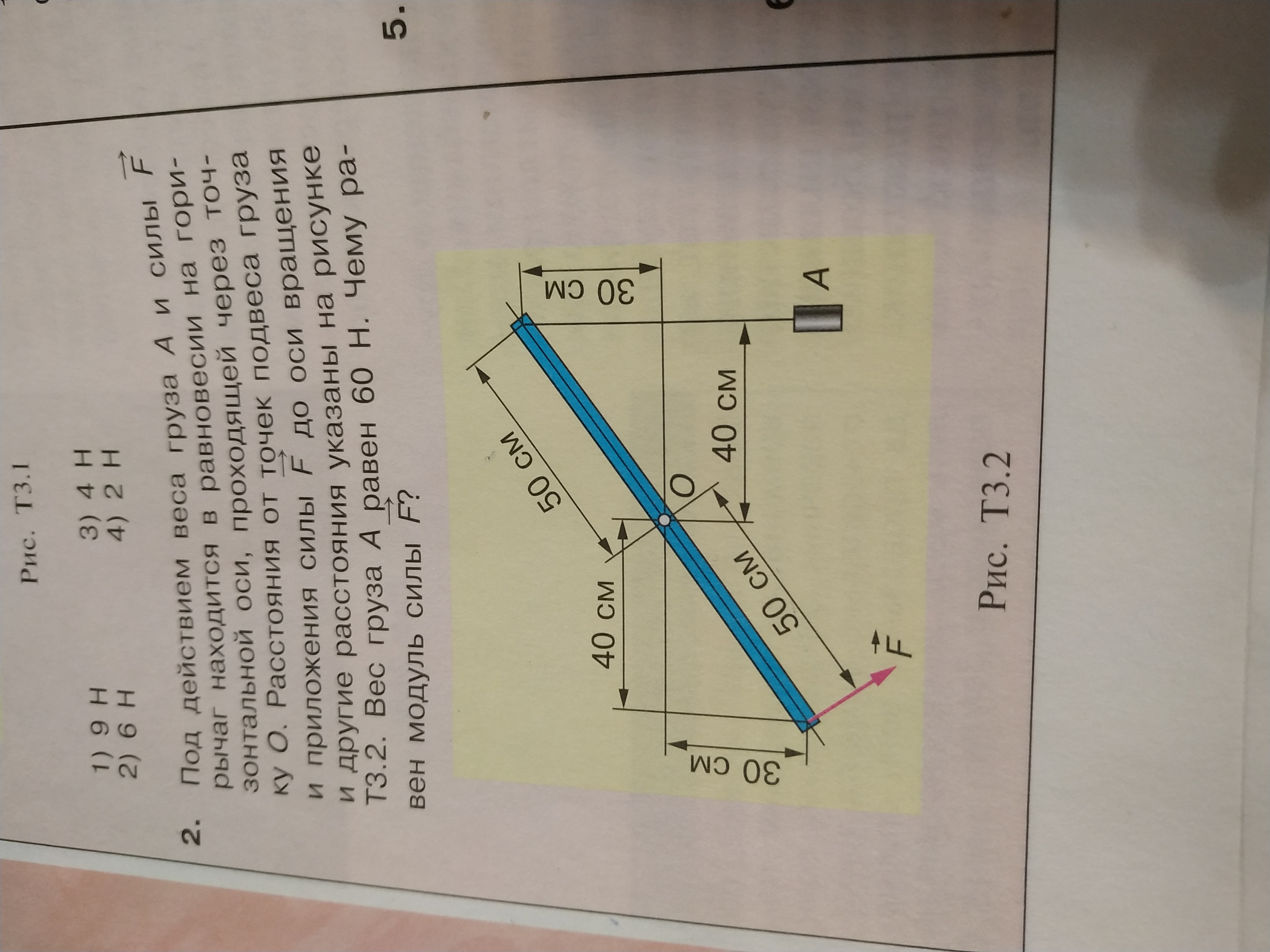 Под действием веса груза А и силы F рычаг находится в равновесии на горизонтальной оси, проходящей через точку О. Расстояния от точек подвеса груза и приложения силы F до оси вращения и другие расстояния указаны (снизу). Вес груза А равен 60H. Чему равен модуль силы F? 1. 36H 2. 48H 3. 60H 4. 75H 5. 80H..... ЧЕРЕЗ ДАНО_СИ_РЕШЕНИЕ