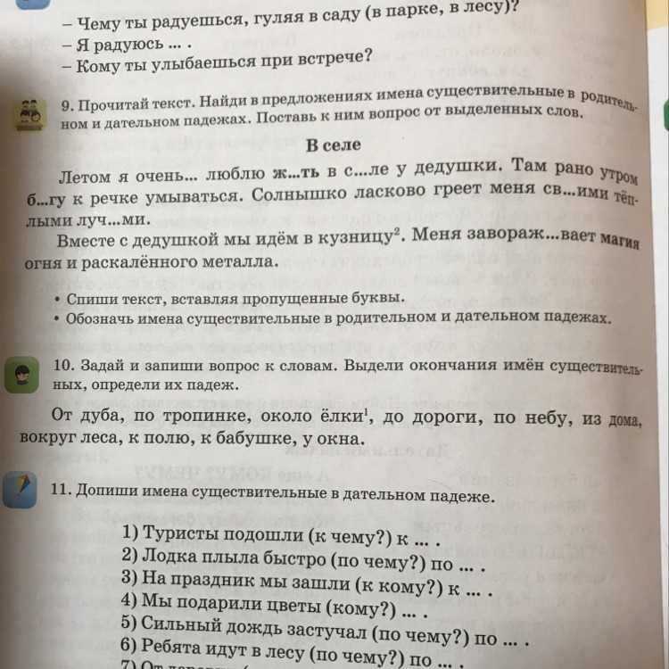 от чего от дуба по чему по тропинке около чего елки до чего до дороги по чему по небу из чего из дома вокруг чего леса к чему к полю к кому к бабушке у чего у окна