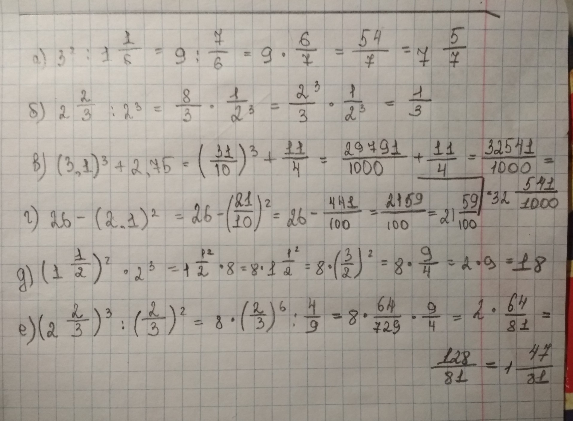 6. 8/3 * 8/3 * 8/3 / 2/3* 2/3 = 8/3 * 8/3 * 8/3 * 3/2 * 3/2 = 512/4*3= 128/3