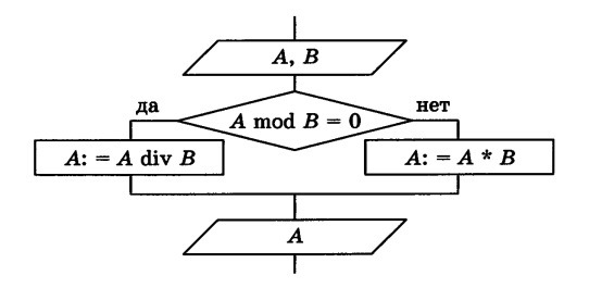Определите значение переменной А в результате выполнения фрагмента алгоритма, представленного блок-схемой. A=12. B=4