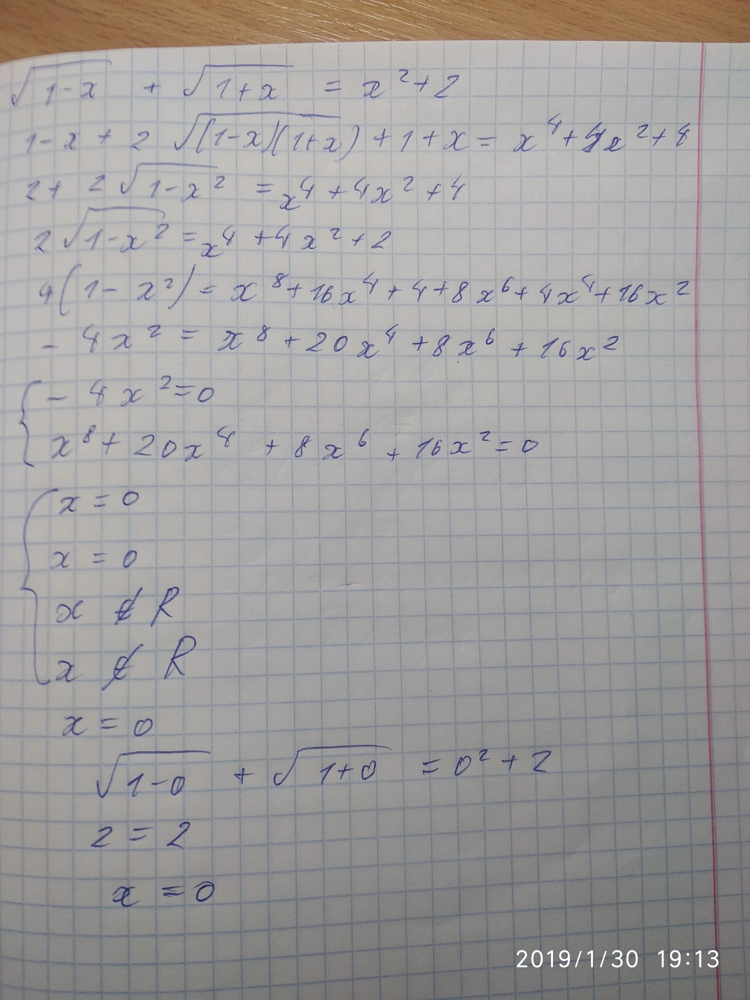 решение в целом странное - поэтому и подумал на калькулятор. откуда возникает система условий? не проще перекинуть этот несчастный -4x² в другую часть уравнения?