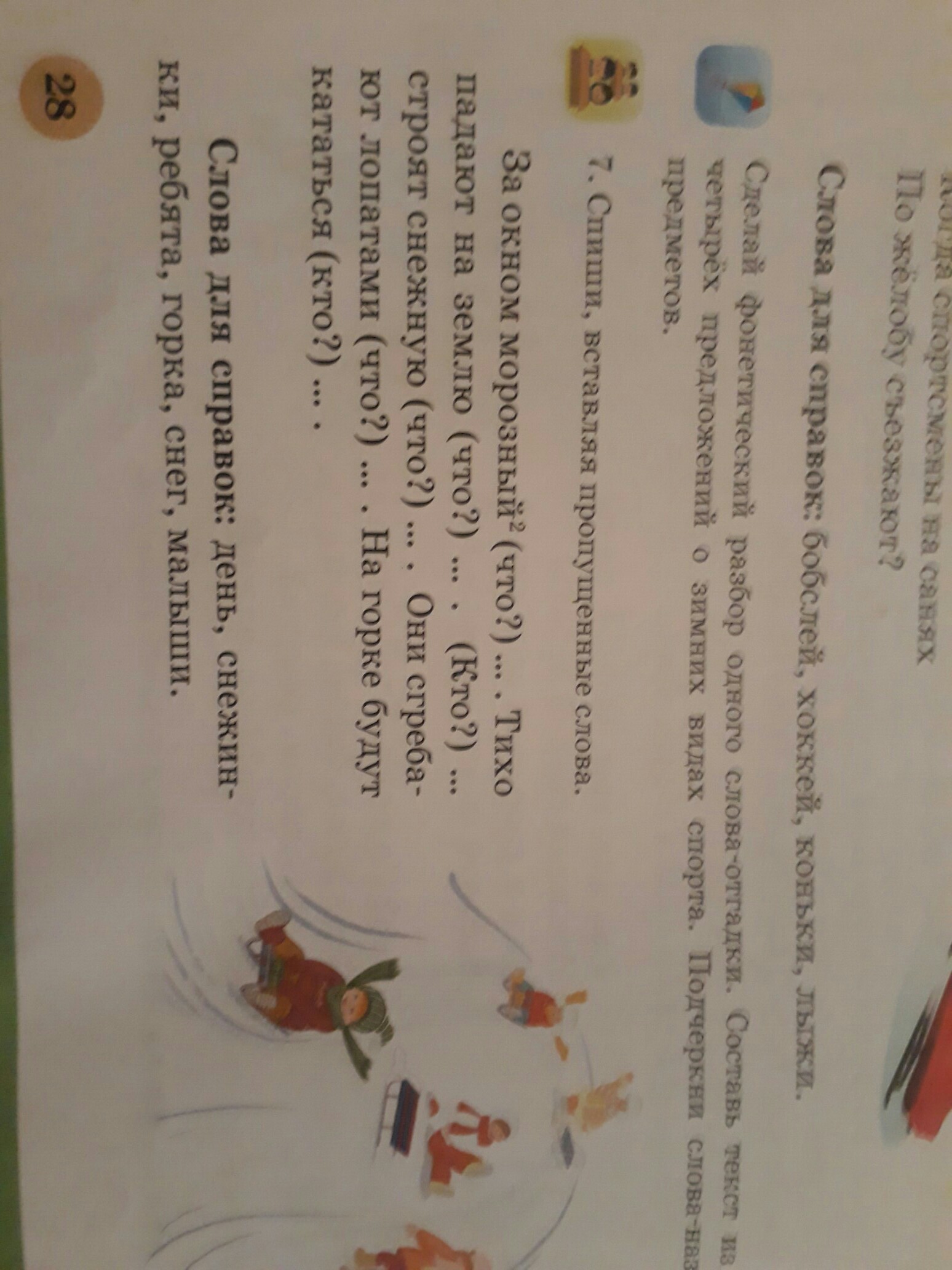 день, снежинки, ребята, горку, снег, малыши