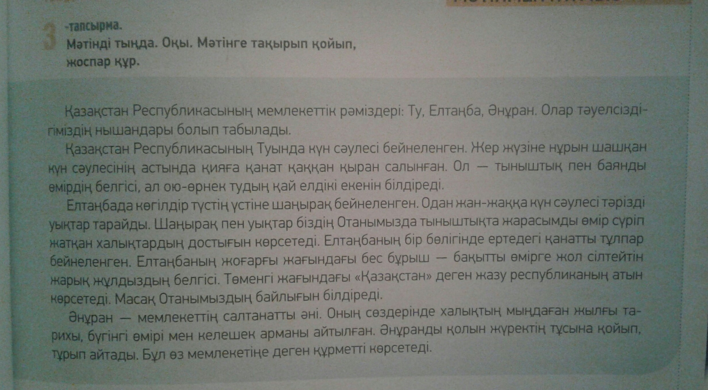 Тақырып:Қазақстан Республикасының мемлекеттік рәміздері.