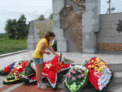 На данном фото я вижу скорбящую девочку, подносящую красивейшую розу в память об участниках Великой Отечественной Войны.
