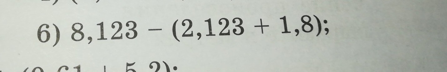 А ещё проще так: 8,123-(2,123+ 1,8)=8,123-2,123- 1,8=6-1,8=4,2
