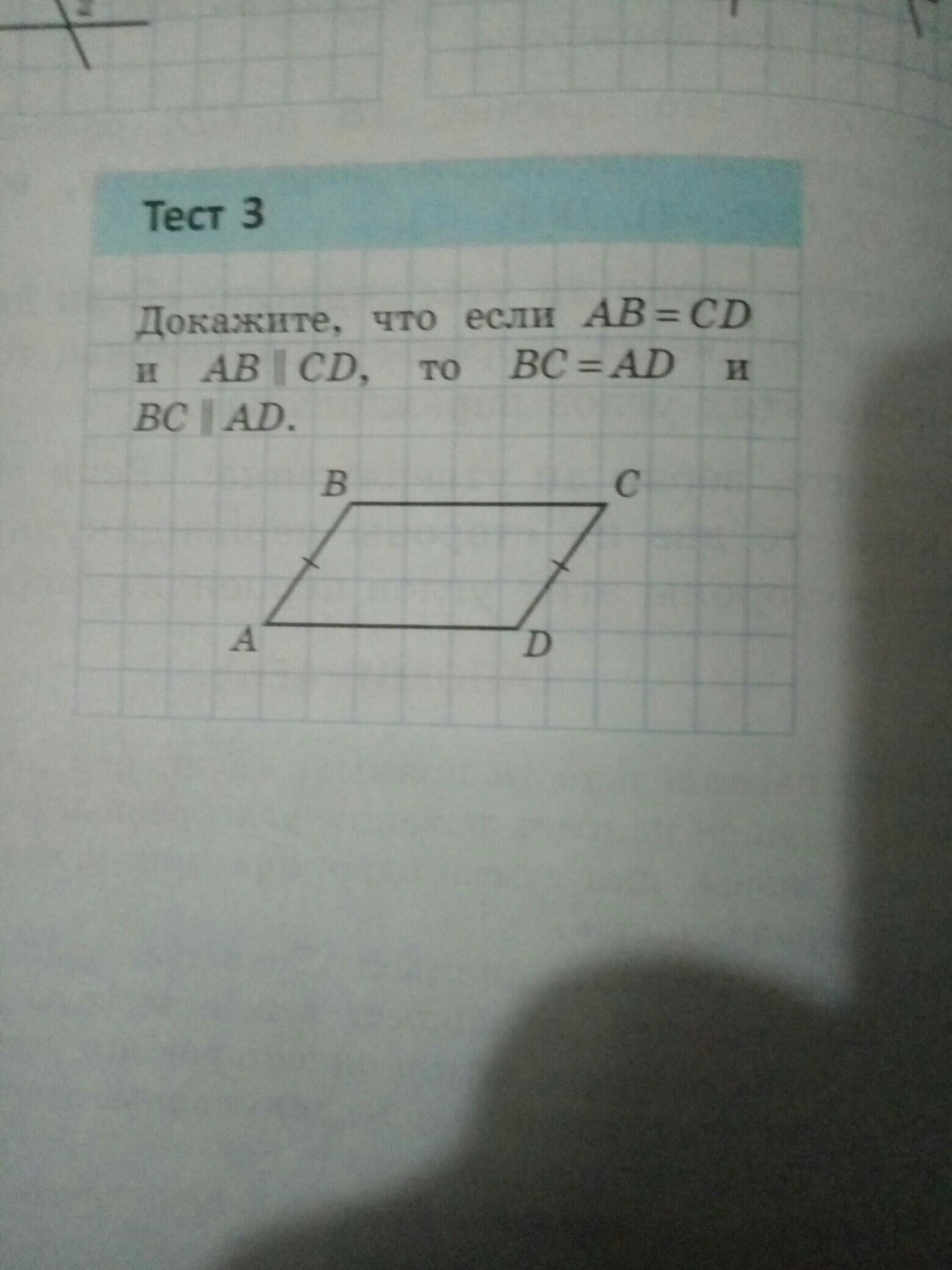 Так как AB=CD и AB||CD, то ABCD параллелограмм и BC=AD и BC||AD по свойству параллелограмма.